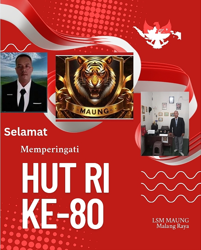 Menjelang perayaan Hari Ulang Tahun Republik Indonesia yang ke-80, Ketua Dewan Pimpinan Daerah Malang Raya Lembaga Swadaya Masyarakat Monitor Aparatur Untuk Negara dan Golongan ( DPD LSM MAUNG) Mashuri menyampaikan pesan khusus dari Ketum DPP LSM MUNG Hadsya Prana yang menekankan pentingnya persatuan dan kesatuan bangsa.