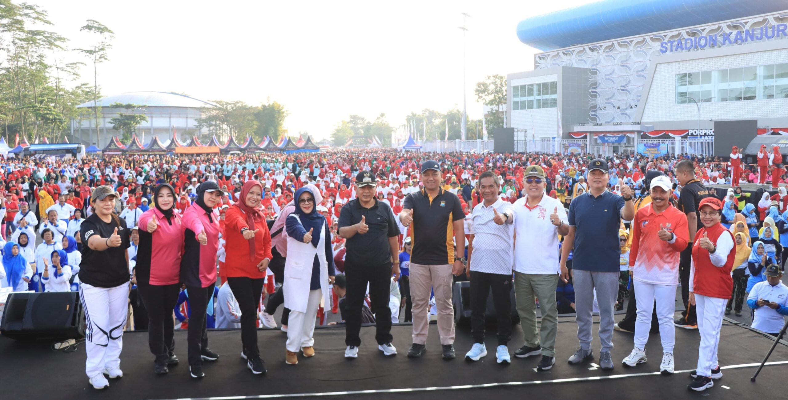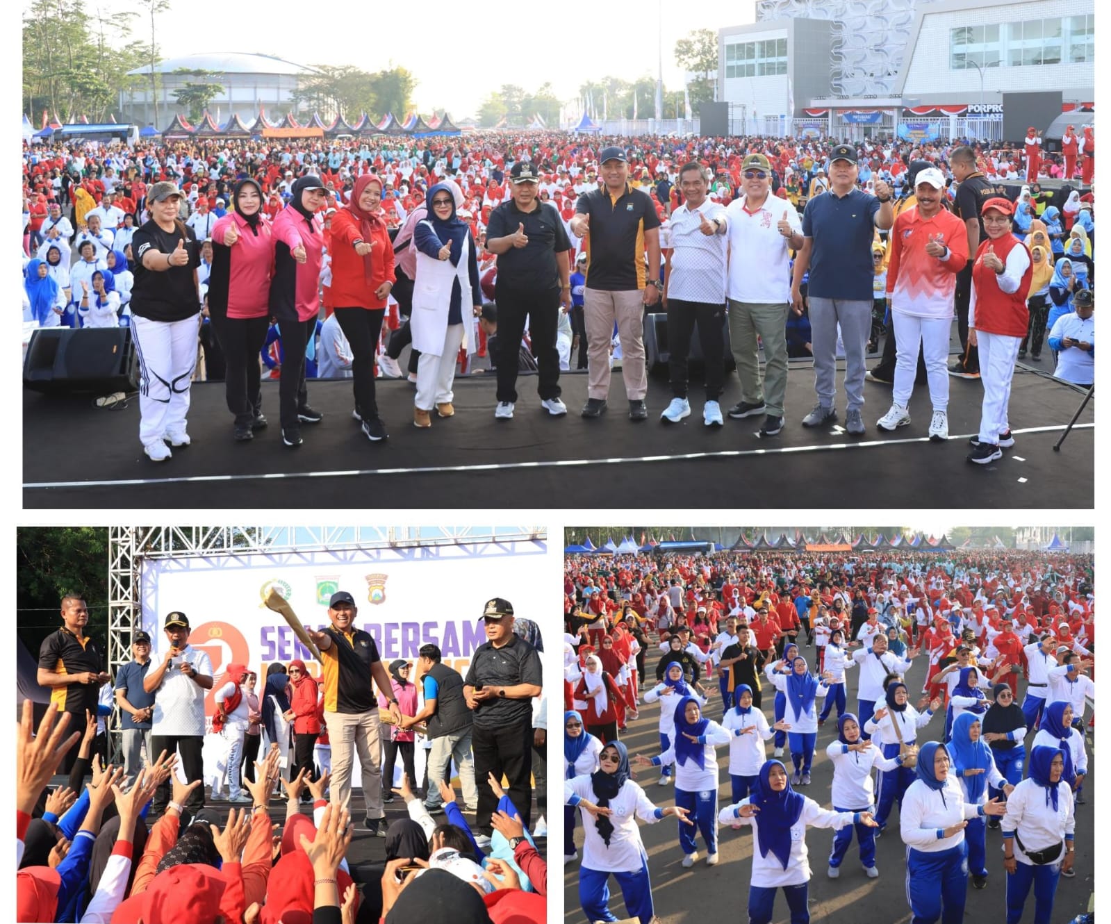 Acara yang berlangsung sejak pukul 06.00 WIB ini diikuti lebih dari 8.000 peserta dari berbagai kalangan. Kegiatan diawali dengan senam massal dan diwarnai pembagian door prize, pelayanan publik, hingga pemeriksaan kesehatan gratis.