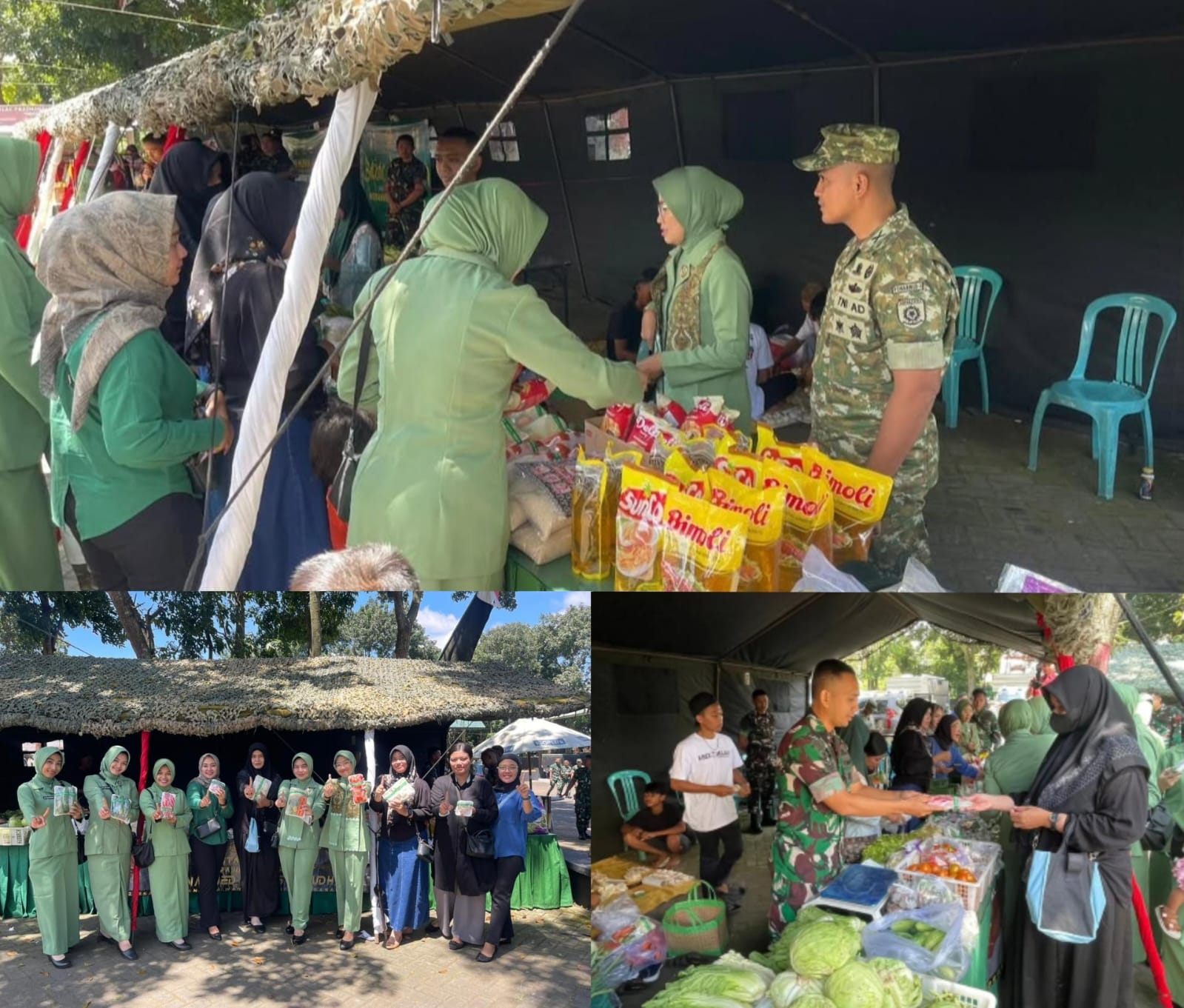 Sejak di buka ,stand Yon Armed 1/Ajusta yudha langsung di serbu pengunjung yang sangat antusias memanfaatkan kesempatan membeli berbagai kebutuhan pokok dengan harga terjangkau .
