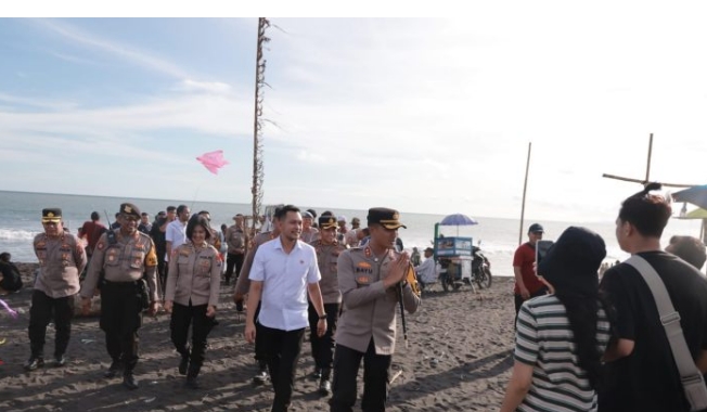 Kapolres Jember, AKBP Bayu Pratama Gubunagi didampingi Wakapolres Ferry, Kasat Reskrim AKP Angga Riatma, Kasat Lantas AKP Bagas, Kasat Narkoba lptu Nauval Muttaqin, Kasat Intelkam Iptu Hari Subagyo dan Kapolsek Ambulu AKP Latifa Andika, meninjau sejumlah destinasi wisata (05/04/25).