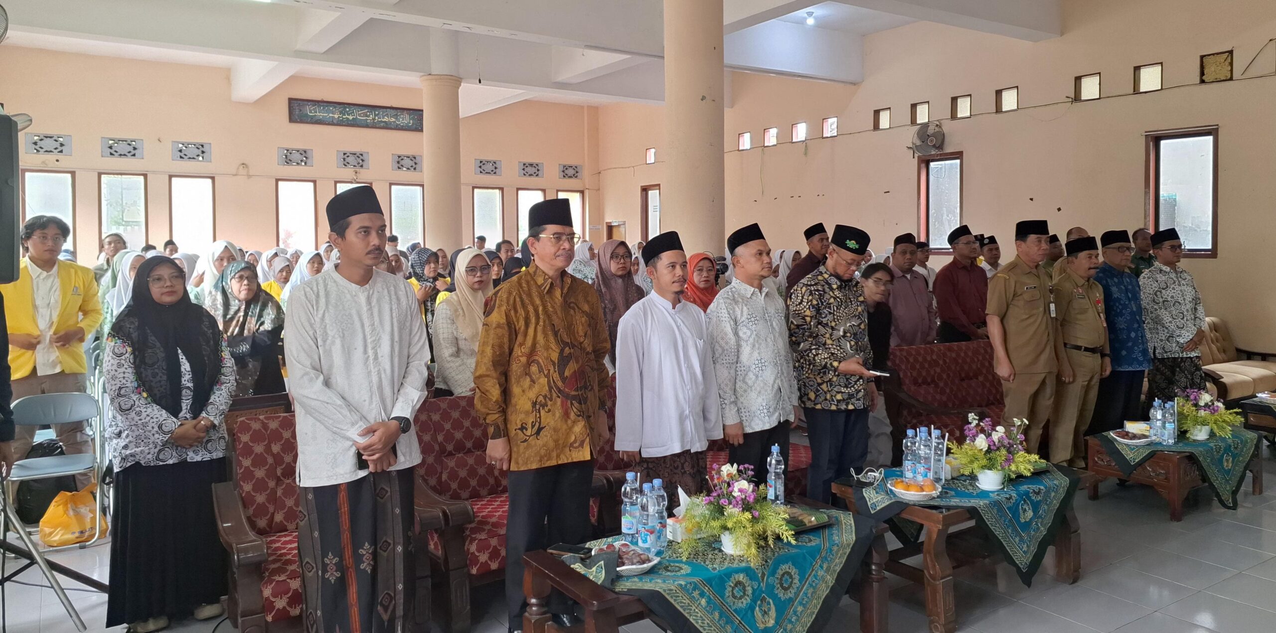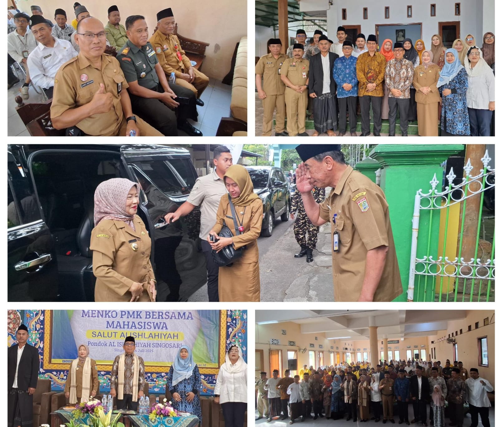 Wakil bupati Malang Dra. Hj. Latifah Shohib bersama sambut kedatangan menteri PMK ( koordinator bidang pembangunan manusia dan kebudayaan Republik Indonesia) Prof. Dr. Pratikno, M.Soc.Sc , pada Senin (14-07-2025) di aula gedung ponpes Al-Ishlahiyah di jalan kramat kelurahan pagentan, kecamatan singosari, kabupaten malang.