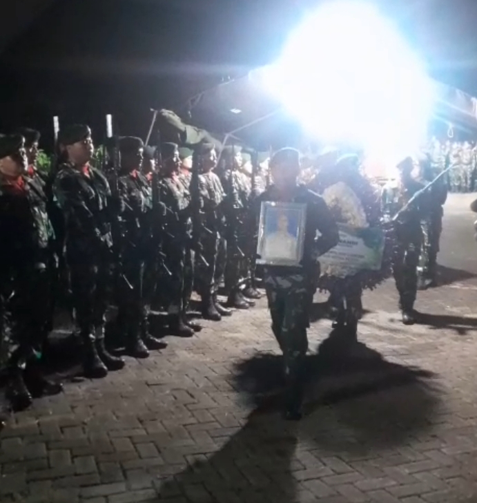 Acara Pemakaman di TPU Karangjati Ardimulyo sekitar pukul 20.00 wib malam hari, struktur Pasukan yang terlibat dalam upacara Pemakaman :