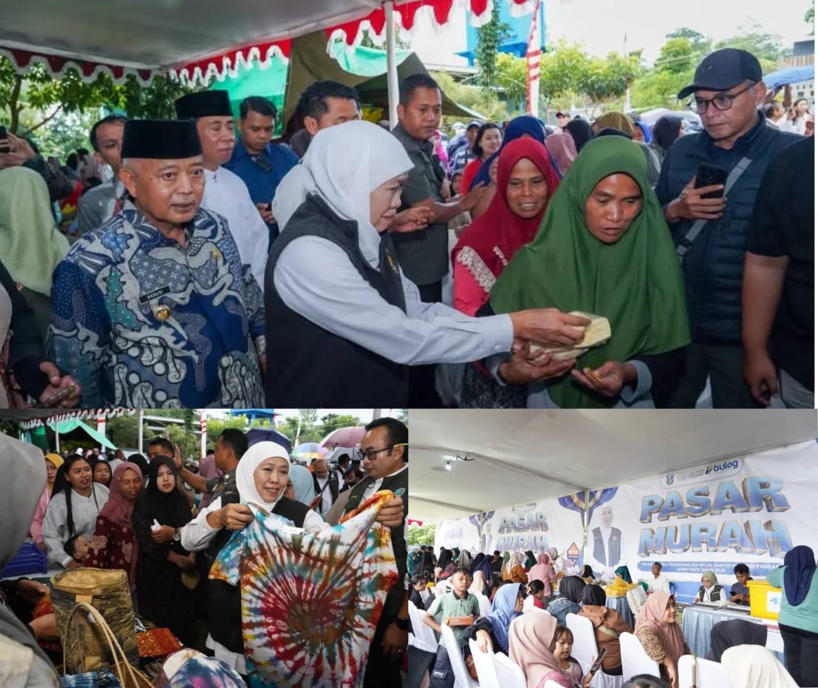 ​”Ramadan atau menjelang lebaran ada kecenderungan peningkatan kebutuhan logistik masing-masing warga. Kita juga melihat ada dinamika kenaikan harga di pasar tradisional. Untuk mengendalikan itu, maka dibuat pasar murah ini. Barang di sini dijual dengan harga di bawah harga pasar,” ungkap Khofifah Indar Parawansa.