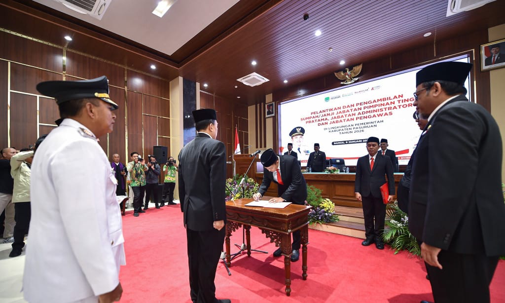Acara pelantikan dilaksanakan di Auditorium Mpu Sindok, Komplek Kantor Bupati Pasuruan, Kamis (8/1/2026) siang.