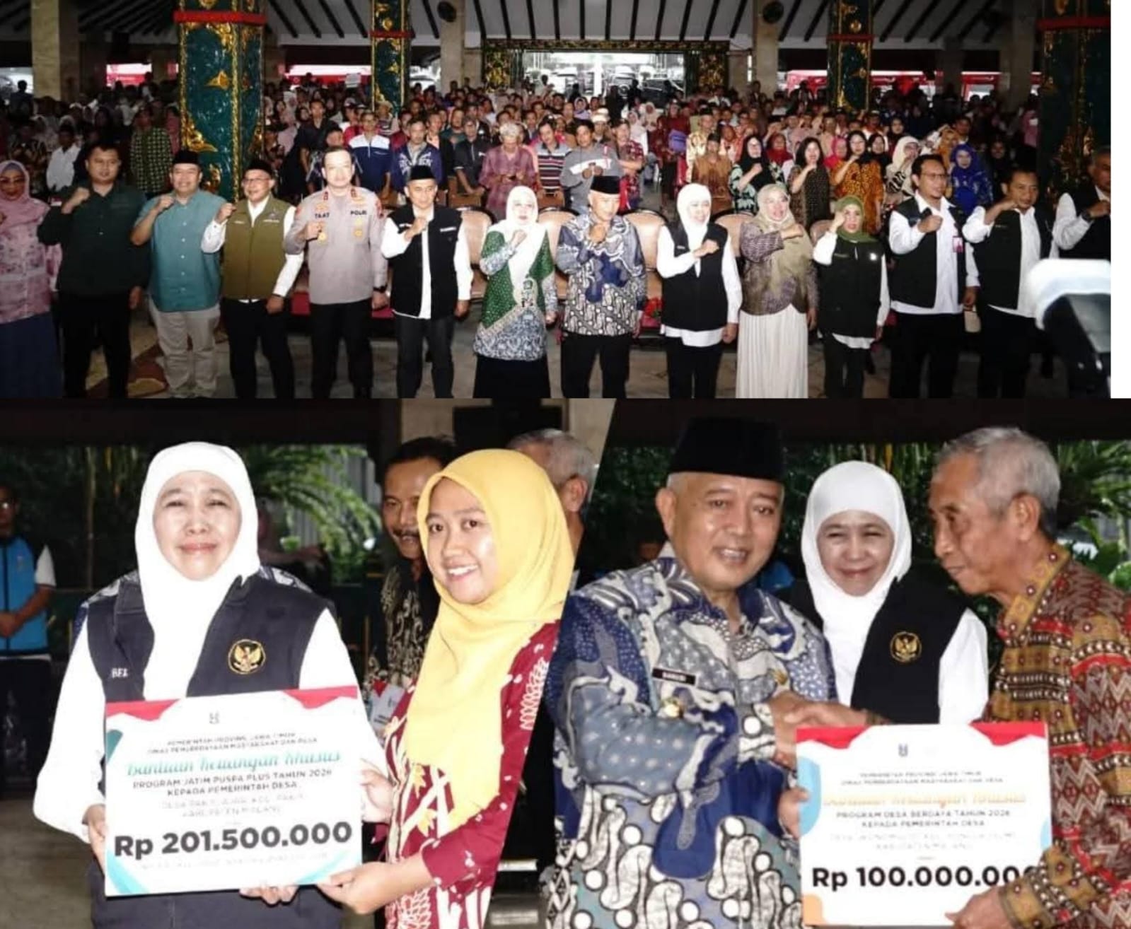 Pada kesempatan tersebut, Gubernur Jawa Timur menyalurkan bantuan sosial dengan total nilai sebesar Rp 7.050.325.000 yang menyasar berbagai kelompok penerima manfaat, antara lain masyarakat miskin ekstrem, penyandang disabilitas, lanjut usia kurang mampu, penerima zakat produktif, hingga program pemberdayaan desa. Penyaluran bansos ini merupakan bagian dari upaya Pemerintah Provinsi Jawa Timur dalam memperkuat jaring pengaman sosial sekaligus mendorong kemandirian ekonomi masyarakat.