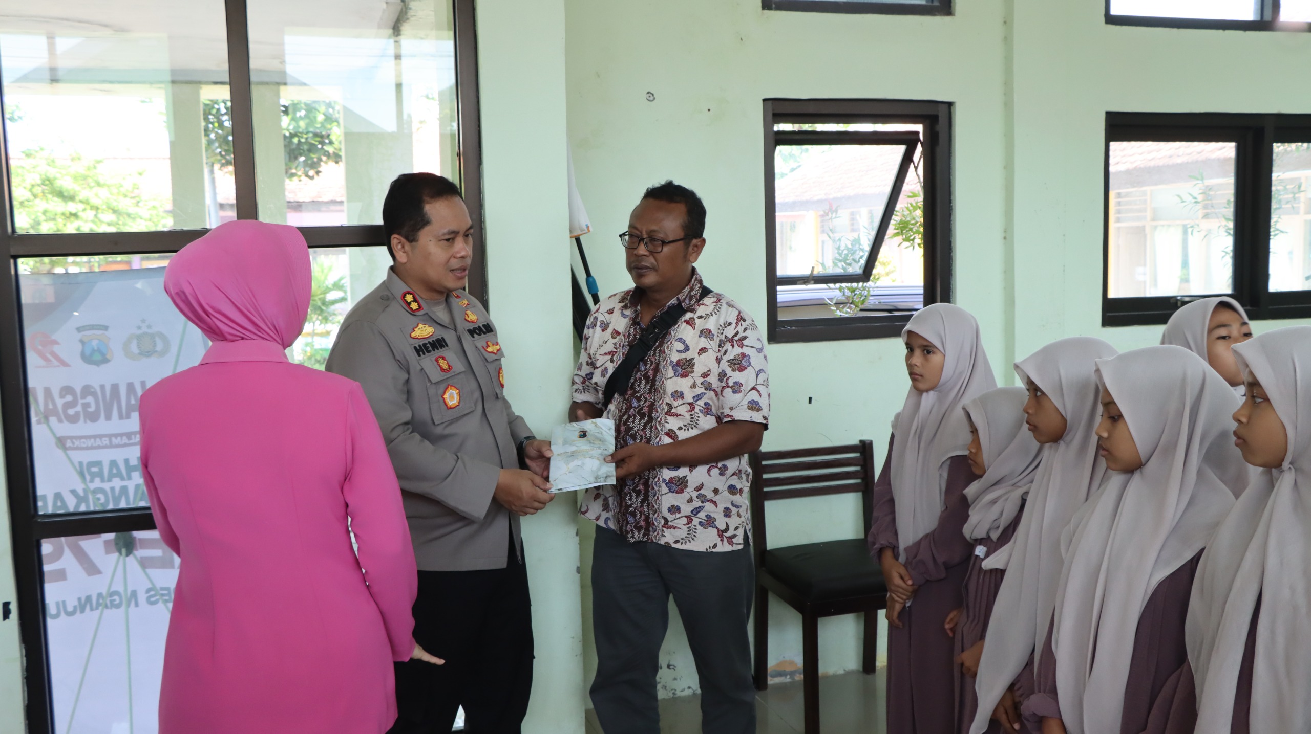 Dalam kegiatan tersebut, jajaran Polres Nganjuk Polda Jatim menyerahkan bantuan sembako, perlengkapan sekolah, serta bingkisan kepada anak-anak asuh sebagai bentuk kepedulian sosial dan solidaritas kemanusiaan.