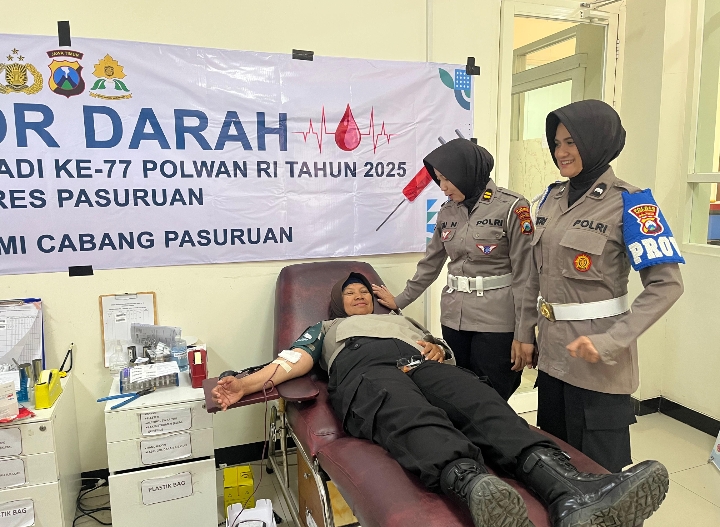 Dalam rangka memperingati Hari Jadi ke-77 Polisi Wanita (Polwan) Republik Indonesia, Polwan Polres Pasuruan menggelar kegiatan donor darah yang berlangsung pada Kamis (14/8/2025) di Kantor Palang Merah Indonesia (PMI) Kabupaten Pasuruan. Acara dimulai pukul 08.00 WIB hingga selesai dengan suasana penuh kekeluargaan dan semangat berbagi.
