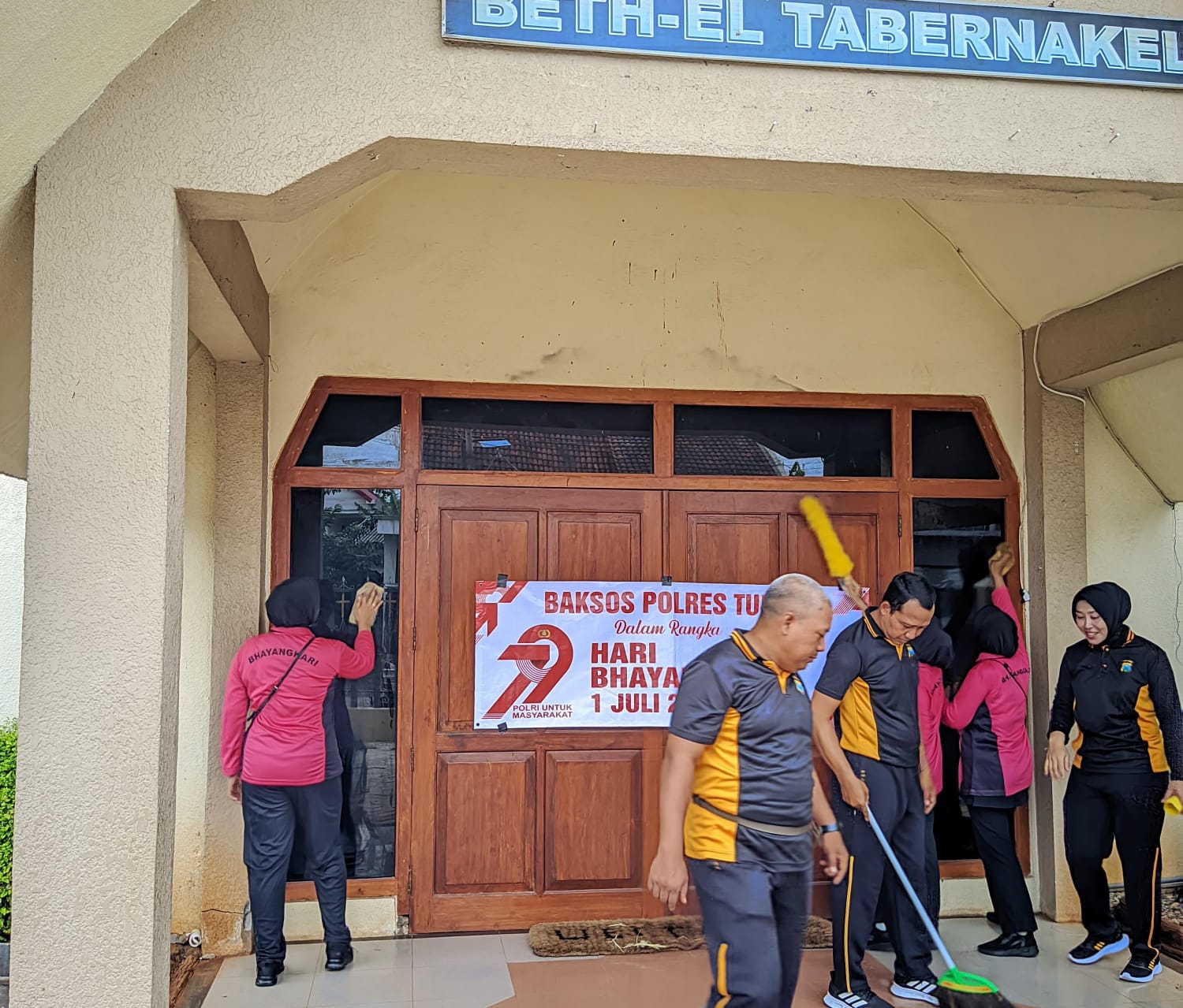 TUBAN (JATIM) MINITORSIGAP.COM__, Menjelang peringatan Hari Bhayangkara ke-79, Polres Tuban Polda Jatim menggelar kegiatan bakti sosial religi berupa bersih-bersih tempat ibadah, Jumat (13/6/2025).