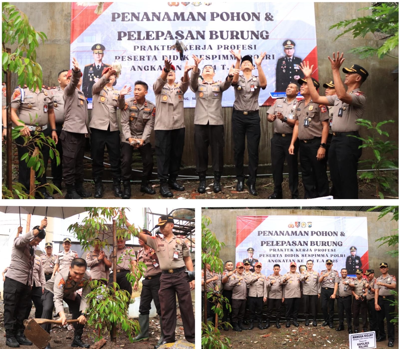 *MALANG* – Peserta Didik Sekolah Staf dan Pimpinan Menengah (Sespimma) Polri Angkatan ke-74 Tahun 2025 menggelar kegiatan lingkungan hidup di Polres Malang. Dalam kegiatan tersebut, para peserta menanam pohon dan melepas 125 ekor burung ke alam bebas sebagai simbol kepedulian terhadap pelestarian lingkungan.